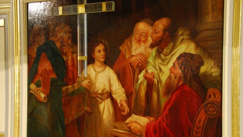 Im Dialog gehen Dr. Michael Rosenkranz, Beauftragter für interreligiösen Dialog der jüdischen Gemeinde Bochum-Herne-Hattingen, und Hansjörg Federmann, Pfarrer an der St.-Georgs-Kirche, gemeinsam mit den Gästen der vielschichtigen Botschaft des Bildes (im Original von 1880) und der dargestellten Szene nach. Musikalische Begleitung: María Cristina Witte.